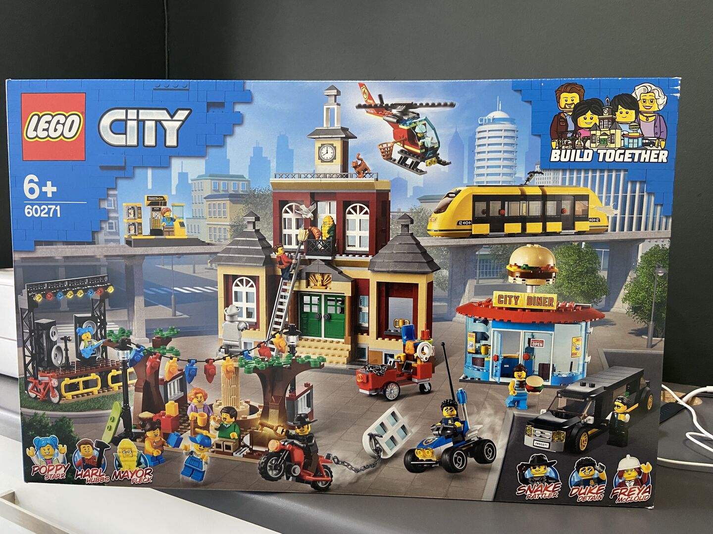 Brand New in Sealed Box!  This amazing LEGO® City Main Square (60271) playset is a great introduction to the exciting world of LEGO® City. Perfect for kids aged 5 and up, it inspires open-ended, imaginative role play based on real-life scenarios. What’s in the box? Buildings include a city hall, concert stage and diner. Vehicles include Snake Rattler's motorbike and Harl Hubbs' handyman wagon. There's also an array of LEGO® City Adventures TV series minifigures. Kids get to create and recreate scenes from the LEGO® City Adventures TV series with this amazing building set. It’s bursting with realistic features, functions, details and characters that inspire fun, imaginative play. Looking for a cool toy kids aged 5 and up? This LEGO® City Main Square playset makes a great Christmas, birthday or any-other-day gift for LEGO City TV fans and kids who love to play. Requires only basic building skills. When built, the city hall building measures over 12” (32cm) high, 10” (27cm) wide and 5” (15cm) deep, while the tram measures over 4" (12cm) high, 14" (37cm) long and 1" (5cm) wide. Build together! The vehicles, buildings and characters in this set are divided into separate brick bags – each with its own construction guide. So kids, friends and families can enjoy building together. Includes a printed building guide and Instructions PLUS – an interactive building guide that helps budding builders become master builders! Available as part of the free LEGO® Building Instructions app for smartdevices. LEGO® City Town sets come with colorful buildings, cool toy vehicles and fun characters that stimulate imaginative role play as kids create open-ended adventures in realistic settings. All LEGO® City playsets meet the highest industry standards and quality criteria to ensure that all LEGO bricks and pieces are consistent, compatible and connect and pull apart easily every time. LEGO® bricks and pieces are dropped, heated, crushed, twisted and analyzed to make sure every kid's building set meets the highest global safety and quality standards.