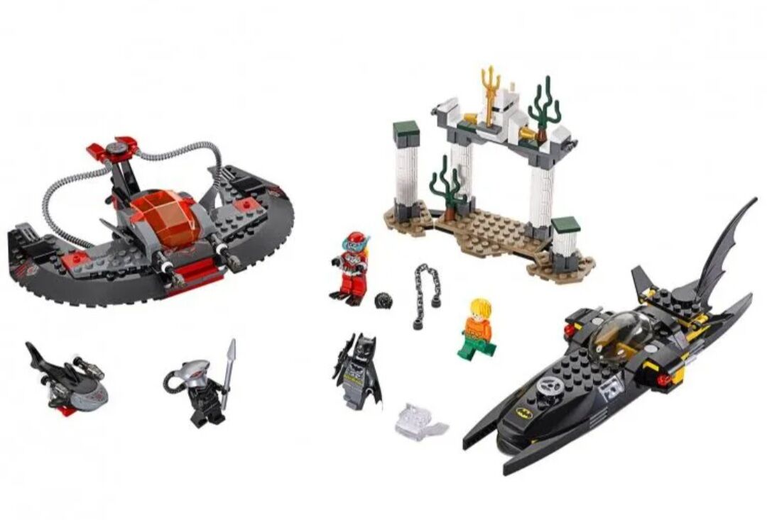 This was a 387 piece DC Comics Super Heroes set with 4 minifigs released in 2015. It was retired in Dec 2015. Minifigs exclusive to this set includes Batman with grey suit and scuba mask head, Black Manta with flat silver helmet and Scuba Robin. Set alsi includes Aquaman minifig. No box included.